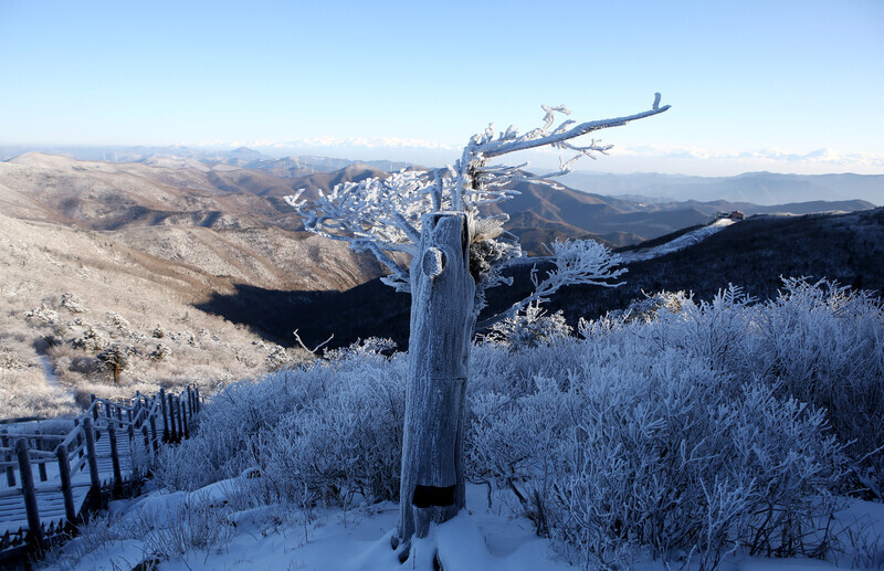 태백산은 산기슭부터 정상까지 자연경관이 아름다워, 많은 등산객들이 찾는 인기 있는 등산 코스입니다. 산 정상에서는 한반도 동해안과 중국 랴오닝성 지역을 한눈에 볼 수 있습니다.