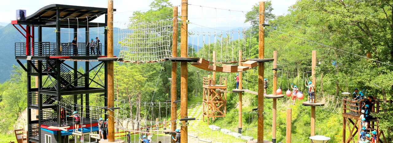 또, 365세이프타운에는 트리트랙이 있습니다. 트리트랙은 나무 위에 설치된 철사를 따라 걷는 체험입니다. 철사가 걸쳐 있는 높은 위치에서 걷는 체험이기 때문에 높은 곳에서의 공포를 극복하고, 균형감각과 체력을 향상하는 효과도 있습니다.