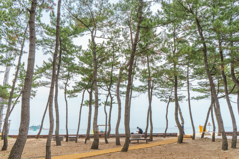 백사장에는 목책 산책로가 조성되어 있고, 뒤편에는 소나무숲이 잘 꾸며져 있으며, 화장실, 샤워장 등의 부대시설도 갖추어진 곳입니다.