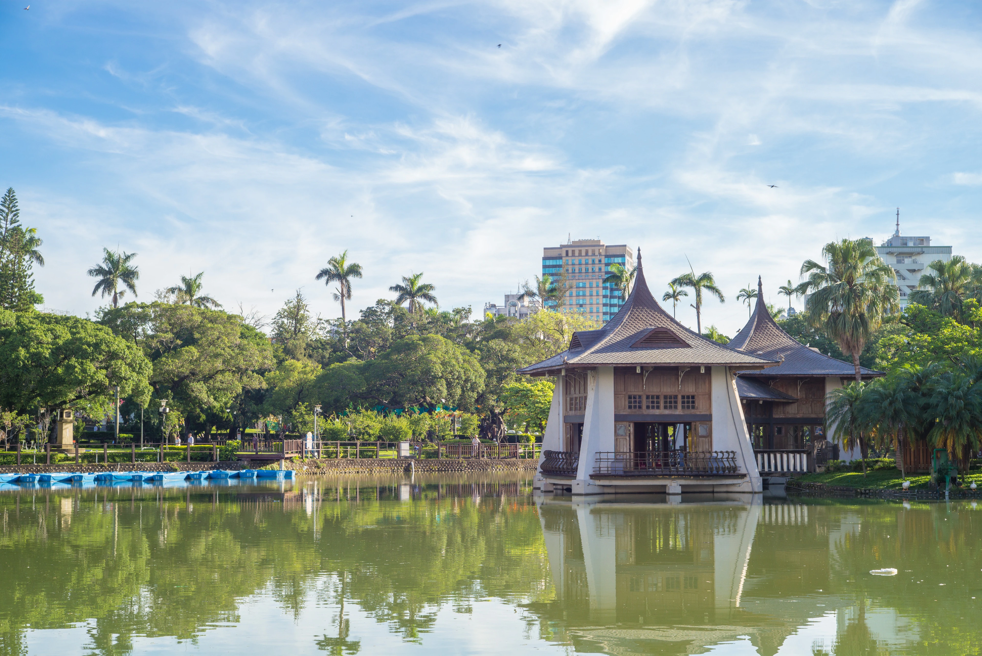 1903년 일제강점기에 조성된 공원으로 타이중 처짠과 함께 지금까지 백 년이 넘는 시간 동안 공원을 찾는 시민들로 가득합니다. 이곳은 중요한 랜드마크로서 역할을 톡톡히 하고 있으며 넓은 공원 용지에 테니스장, 운동장, 산책로와 곳곳에 벤치가 잘 갖춰져 있어 시민들의 여가 휴식 공간으로도 주목받고 있습니다. 무엇보다 많은 나무로 숲이 울창하고 인공호수, 르웨후를 가로지르는 굽 다리와 호수 풍경을 사방으로 바라볼 수 있는 정자 등 아름다운 조경이 많습니다. 호수에는 노 젓는 배가 있어 뱃놀이를 즐길 수 있고 인공 개울에서 물고기와 수생식물을 관찰할 수 있습니다. 또 미끄럼틀, 그네 등 놀이터 시설이 안전하게 잘 갖춰져 있어 아이와 함께 시간을 보내기 좋습니다.