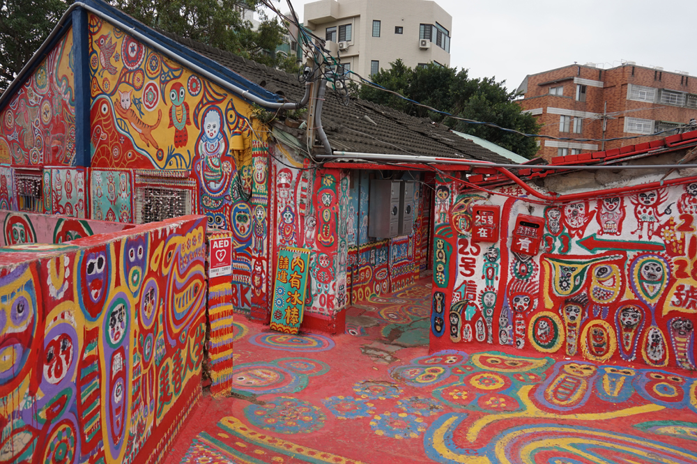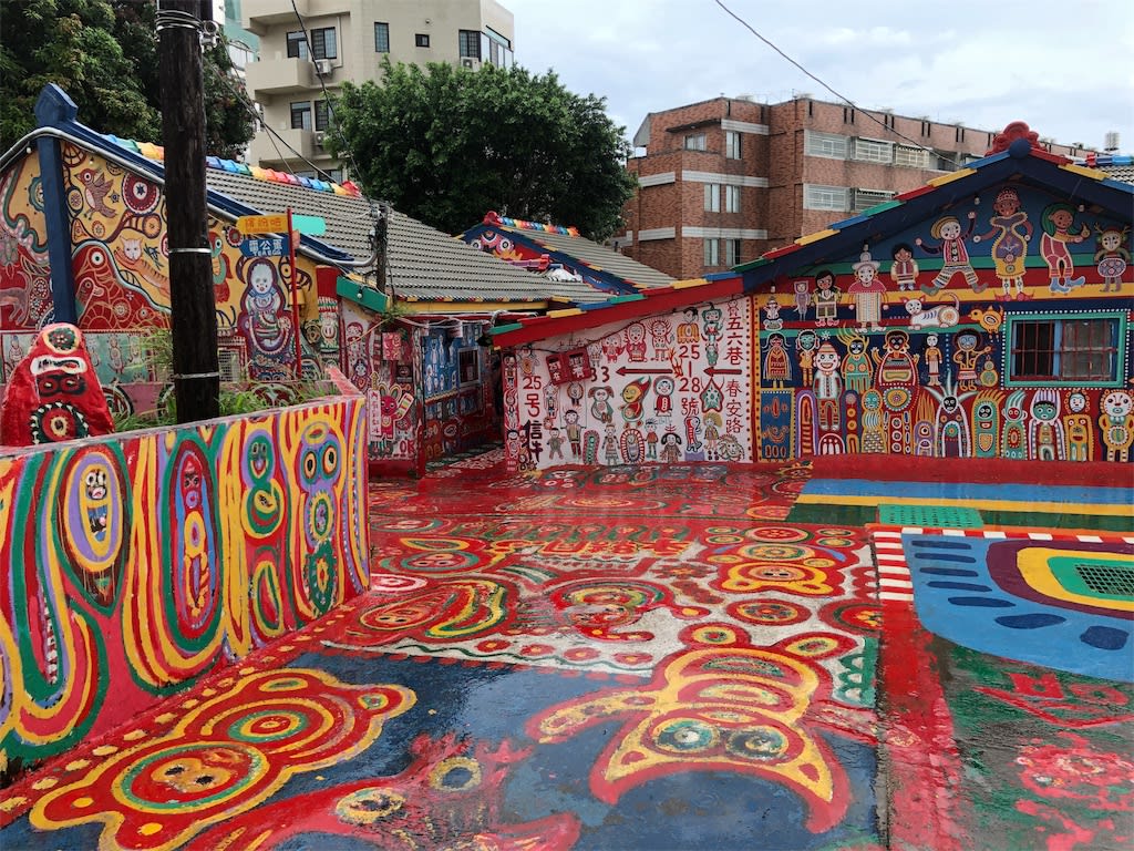 타이중에는 아름다운 색으로 건물들이 칠해진 마을이 있습니다. 바로 무지개 마을입니다. 이곳은 제2차 세계 대전 직후 중국 군인들이 정착하며 생겨난 마을입니다. 이곳은 타이중의 작은 마을이었는데 홍콩 출신의 황용푸 할아버지가 재개발이 예정되어 있던 자신의 마을에 추억을 남기기 위해 다양한 그림들을 그리기 시작했습니다. 이것이 유명해져 무지개 마을이라는 명칭을 얻게 되었고 이 지역에 예정되어있던 재개발계획이 철회되었습니다. 이 마을은 높은 건물은 없고 모두 낮은 건물로 되어있습니다. 점심 이전에는 그림을 그린 할아버지도 기념품 상점에 나와서 관광객과 함께 사진도 찍어줍니다. 할아버지 팬서비스가 상당해서 방문한 관광객들의 사진 요청이 끊이질 않기도 합니다. 무지개 마을은 일반인에게 개방되어 있고 마을 그림이 새겨진 티셔츠와 엽서도 구입할 수 있습니다.
