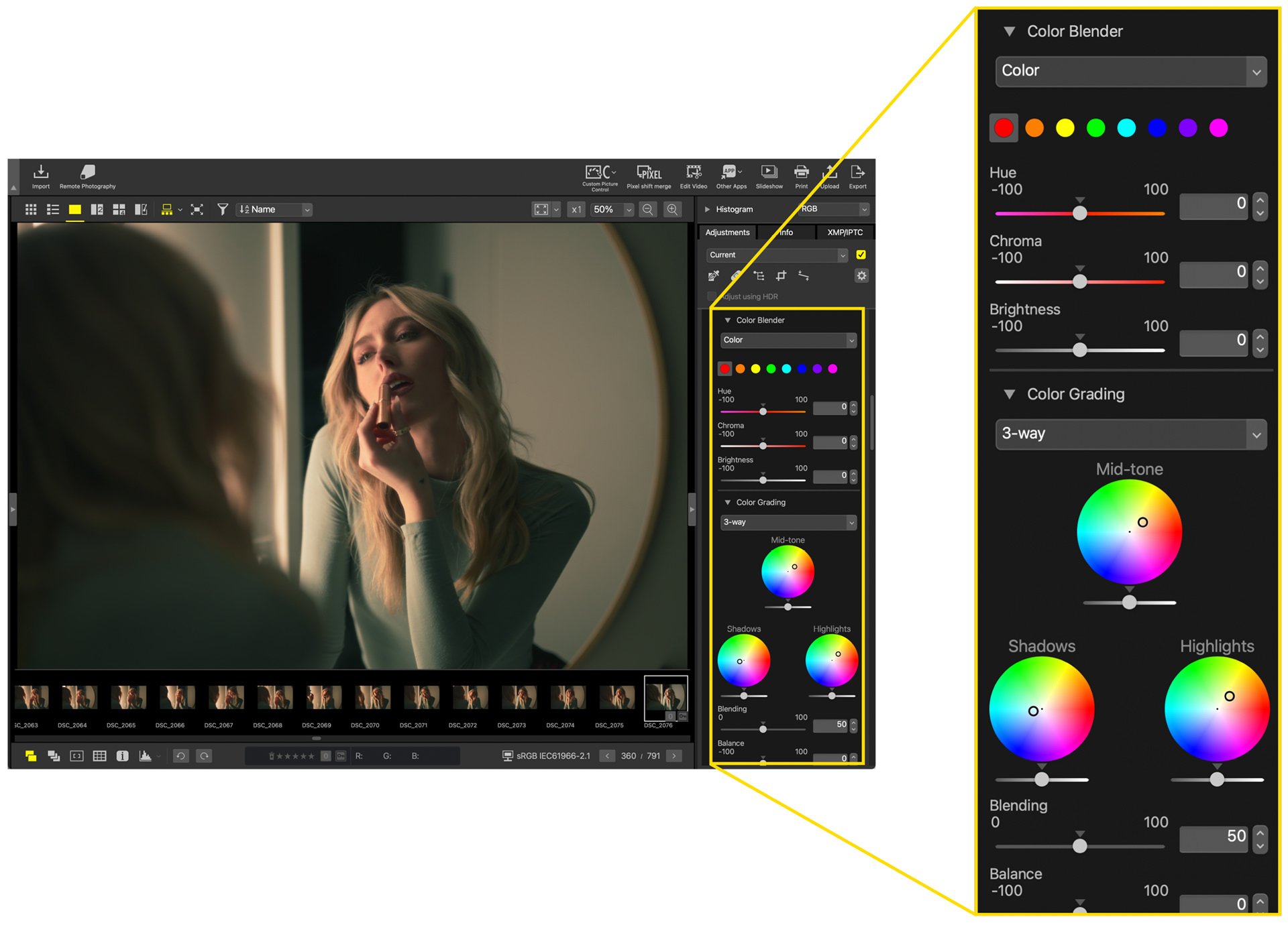뛰어난 화질과 색 표현: Z6 III는 96메가픽셀급의 초고해상도 이미지를 생성할 수 있는 픽셀 시프트 촬영 기능을 제공합니다. 이 기능은 특히 세밀한 디테일이 중요한 상업 촬영이나 대형 인쇄물 제작 시 유용합니다. 또한, Rich Tone Portrait Picture Control 기능은 인물 촬영 시 피부 톤을 부드럽게 표현하여 더욱 자연스러운 결과물을 제공합니다.