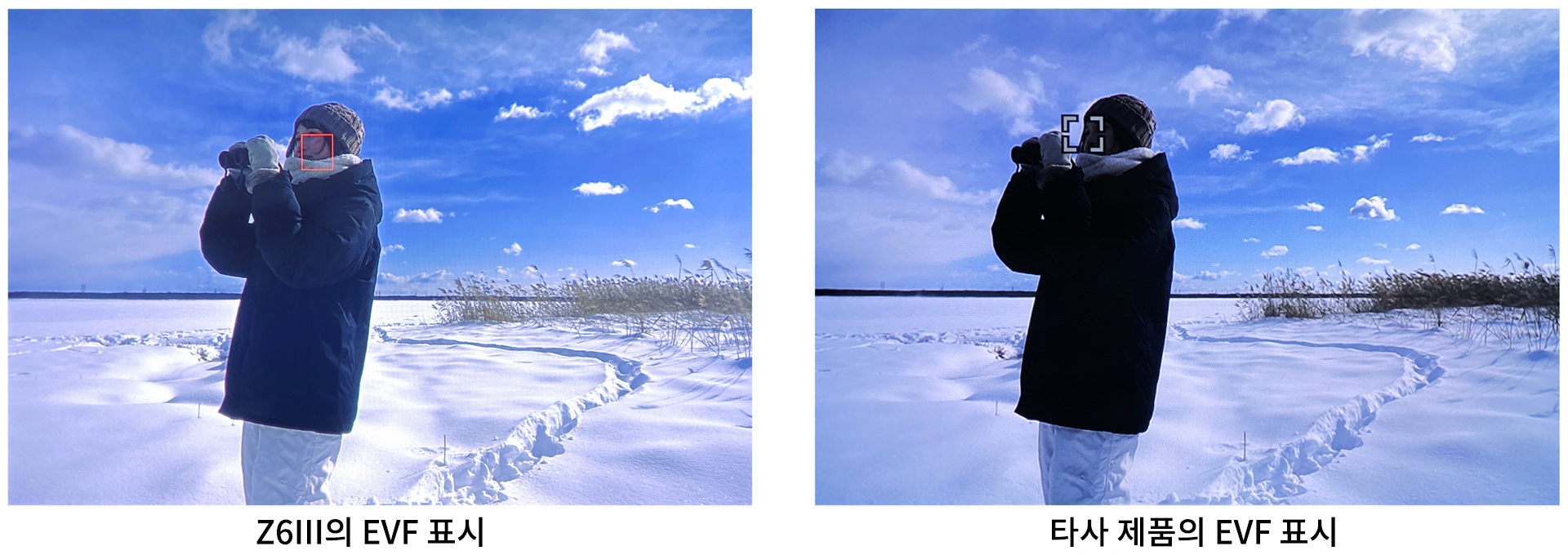 고해상도 EVF(전자식 뷰파인더): Z6 III의 EVF는 5760k-dot의 고해상도를 자랑하며, DCI-P3 색역을 지원합니다. 이는 이전 모델보다 훨씬 더 선명하고 생동감 있는 색 표현을 가능하게 하며, 특히 밝은 야외 환경에서도 선명한 이미지를 제공합니다. 이 EVF는 촬영 중 블랙아웃 현상을 최소화하여 몰입감 있는 촬영 경험을 제공합니다.