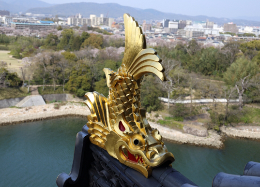 오사카성, 구마모토성과 함께 일본의 3대 성으로 꼽힙니다. 성 건축물 가운데 가장 유명한 것은 천수각입니다. 본성인 대천수각과 보조 건물인 소천수각으로 구분됩니다. 현재의 본성인 대천수각은 제2차 세계대전이 끝날 무렵 미군의 폭격으로 파괴된 것을 1959년에 철근 콘크리트로 복원한 것입니다. 대천수각은 원래 5층이었으나, 복원하면서 지하 1층, 지상 7층으로 지어졌습니다. 지금은 박물관으로 쓰이고 있습니다. 도쿠가와 가문의 유물을 비롯해 나고야성의 역사를 보여주는 1,100여 점의 다양한 문화재 자료가 전시되어 있습니다. 천수각 지붕의 용마루 끝에 얹은 금으로 만든 샤치호코는 머리는 호랑이, 몸통과 꼬리는 물고기 모양을 한 장식물입니다. 이것은 성과 함께 나고야의 상징물로 여겨질 만큼 유명합니다. 반면에 소천수각은 2층 건물로 대천수각과는 달리 소박하고 아담합니다. 그 밖에 중요문화재인 서남쪽의 망루대와 오노테 니노문, 벚나무로 가득한 정원 니노마루 등도 구경하면 좋을 것같습니다.