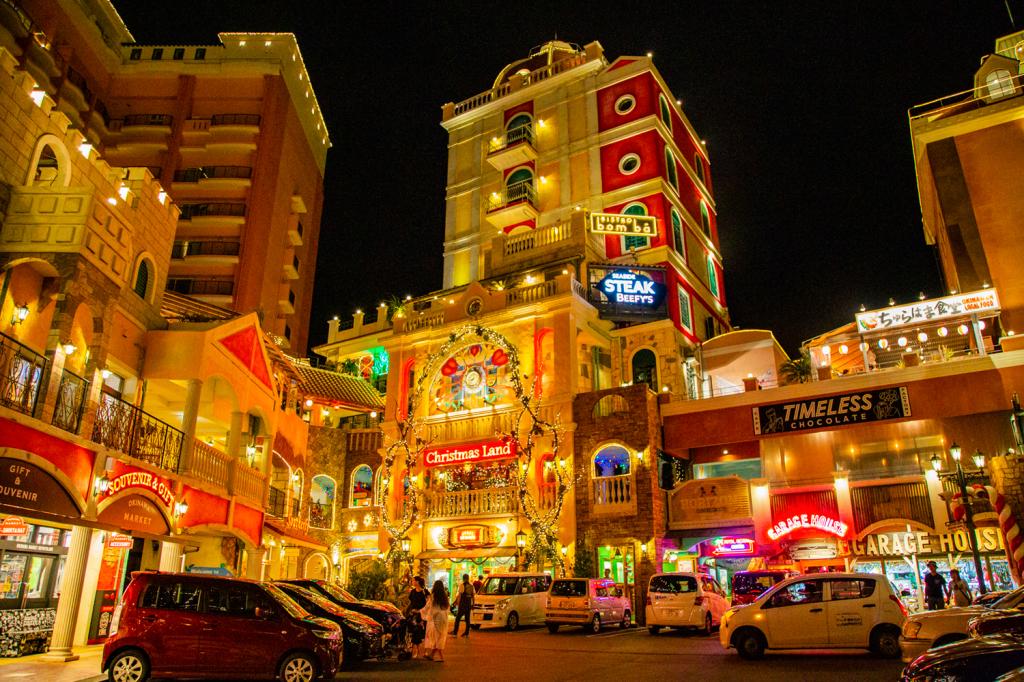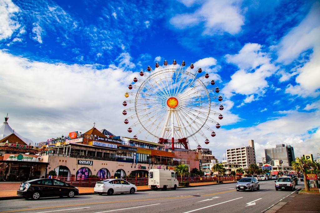 종합 쇼핑 타운으로 미군 비행장으로 쓰이던 부지를 반환받아 미국 샌디에이고의 시포트 빌리지를 모델삼아 만든 곳입니다. 광대한 부지에 들어선 여러 빌딩들에는 대형 마트와 수입 잡화점, 패션숍, 레스토랑, 영화관, 클럽 등이 입점해 있습니다. 아메리칸 빌리지의 상징은 대관람차입니다. 일몰 시간에는 동지나해의 아름다운 석양을 감상할 수 있습니다. 이 곳은 하와이 느낌의 데포 아일랜드, 여러 쇼핑을 즐길 수 있는 아메리칸 디포, 대관람차, 아카라, 포케 팜으로 구성되어 있습니다. 아메리칸 빌리지 자체로도 방문 가치가 높지만, 인근에 선셋비치, 이온 몰, 츄라유 온천 등의 즐길 거리도 있으니 한 번에 즐기기 좋은 곳입니다.