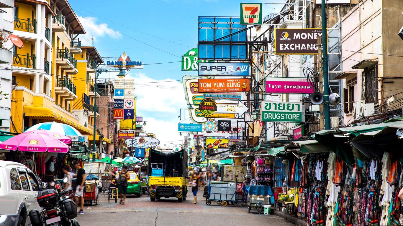 방콕 왕궁에서 약 1km 떨어진 방람푸 시장 근처에 형성된 여행자 거리입니다. 전 세계 배낭여행자들의 베이스캠프라는 별칭이 붙을 만큼 언제나 여행자들로 북적이고 방람푸 지역에서 가장 활기찬 분위기입니다. 400m가량 이어지는 2차선 도로에 수많은 게스트하우스, 인터넷 카페, 레스토랑, 바, 클럽, 마사지 숍, 기념품점 등 여행자 편의 시설 및 유흥업소가 모여 있습니다. 여행사와 은행, 환전소도 이곳에 밀집해 있어 태국 전역으로 연결되는 교통편과 투어 신청, 환전 등 여행에 필요한 모든 준비를 간편하게 해결할 수 있습니다. 배낭여행자들이 카오산 로드로 몰려드는 가장 큰 이유는 저렴한 숙소들이 많기 때문입니다. 복잡한 거리에는 바나나 팬케이크, 팟타이, 생과일주스 등 길거리 간식을 즉석에서 만들어 주는 노점상들도 줄지어 있습니다. 화려한 의류와 가방, 액세서리, 공예품 등을 취급하는 상점도 많아 쇼핑을 하기에도 편리합니다. 대부분 정가가 없기 때문에 흥정을 거쳐 구입합니다.