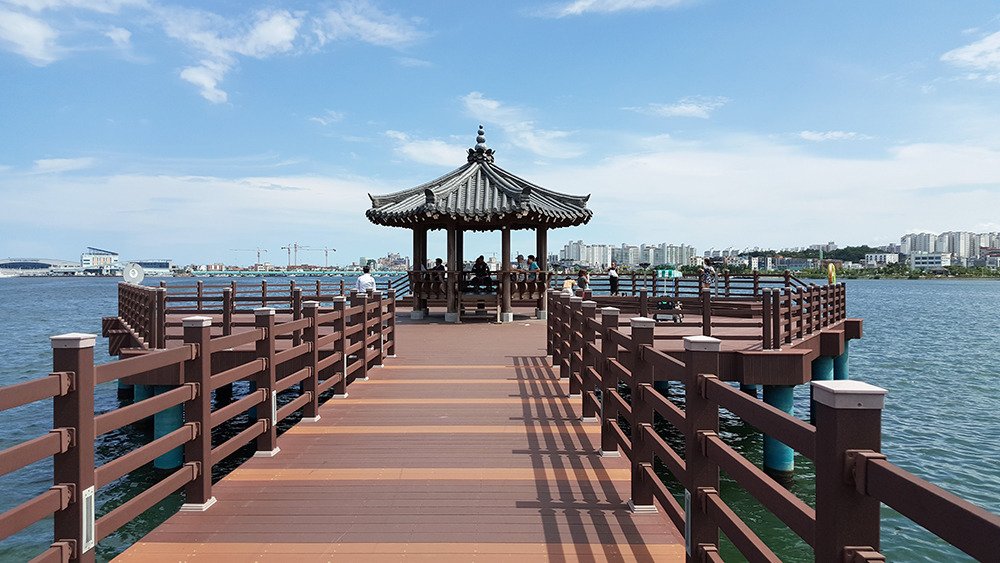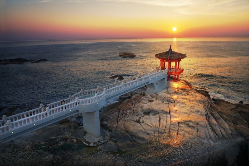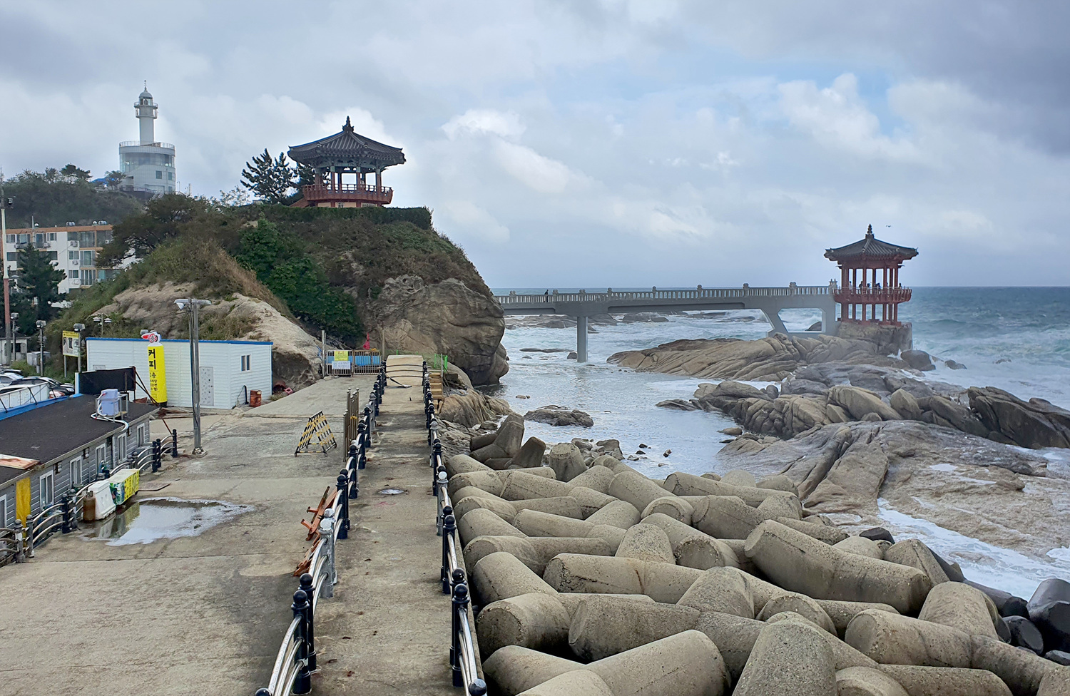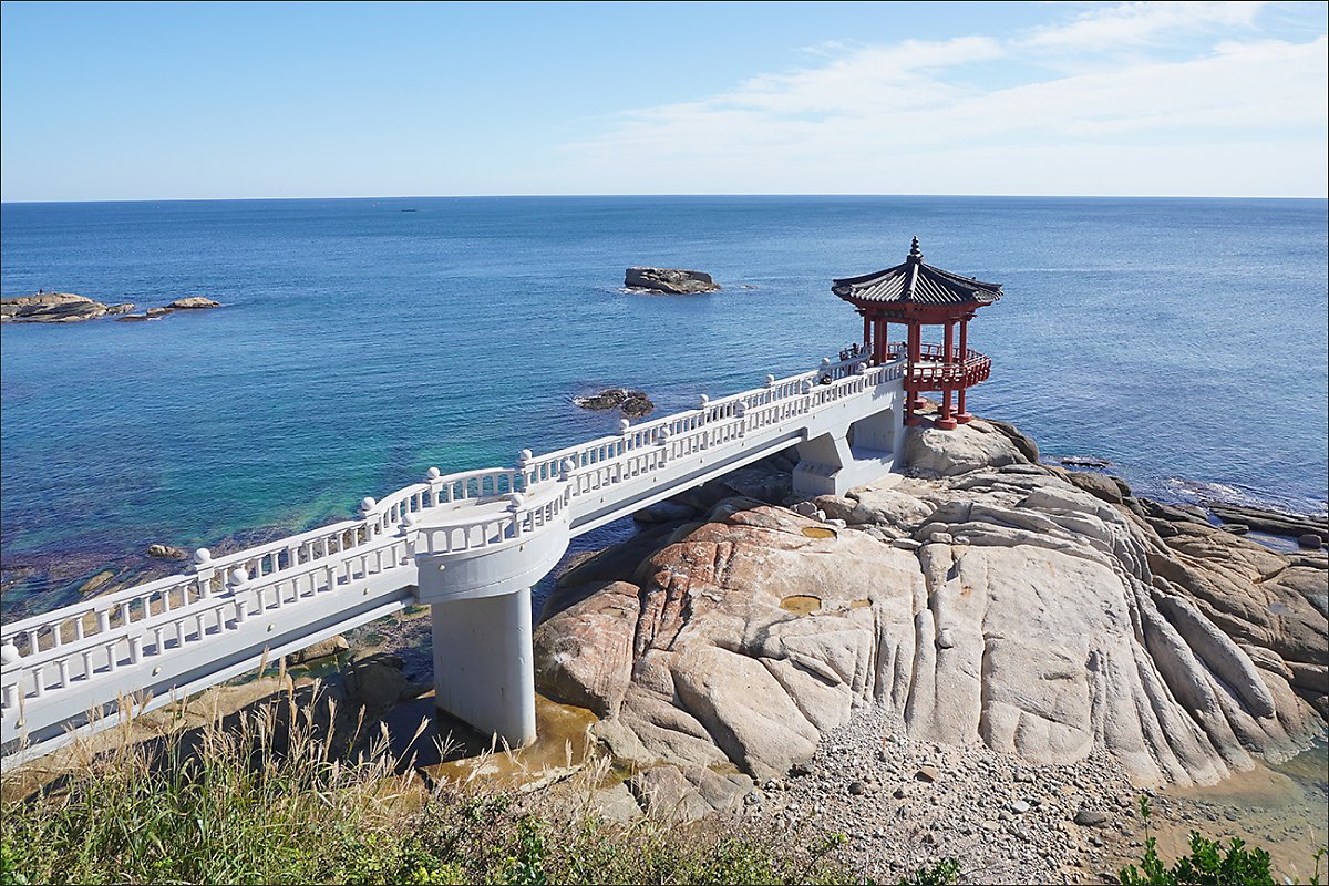 남쪽 방파제 부근으로 실제 정자를 하나 만들어 놓았습니다. 이 정자는 영금정 바위 위에 세워진 해상 정자로 50m 정도의 다리를 건너 들어갈 수 있습니다. 대개 해돋이 정자라고 부르는데, 정자 현판에는 영금정이라는 글을 써 놓았습니다.