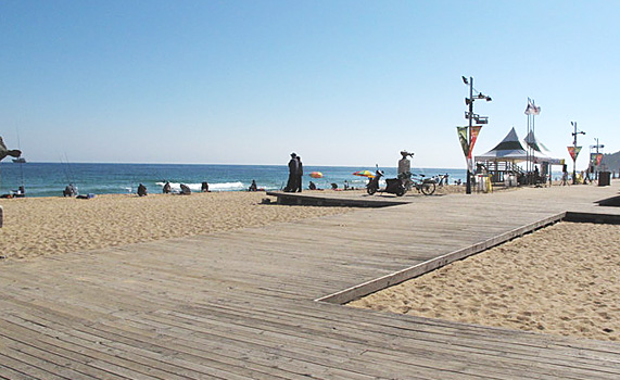 백사장에는 목책 산책로가 조성되어 있고, 뒤편에는 소나무숲이 잘 꾸며져 있으며, 화장실, 샤워장 등의 부대시설도 갖추어진 곳입니다.