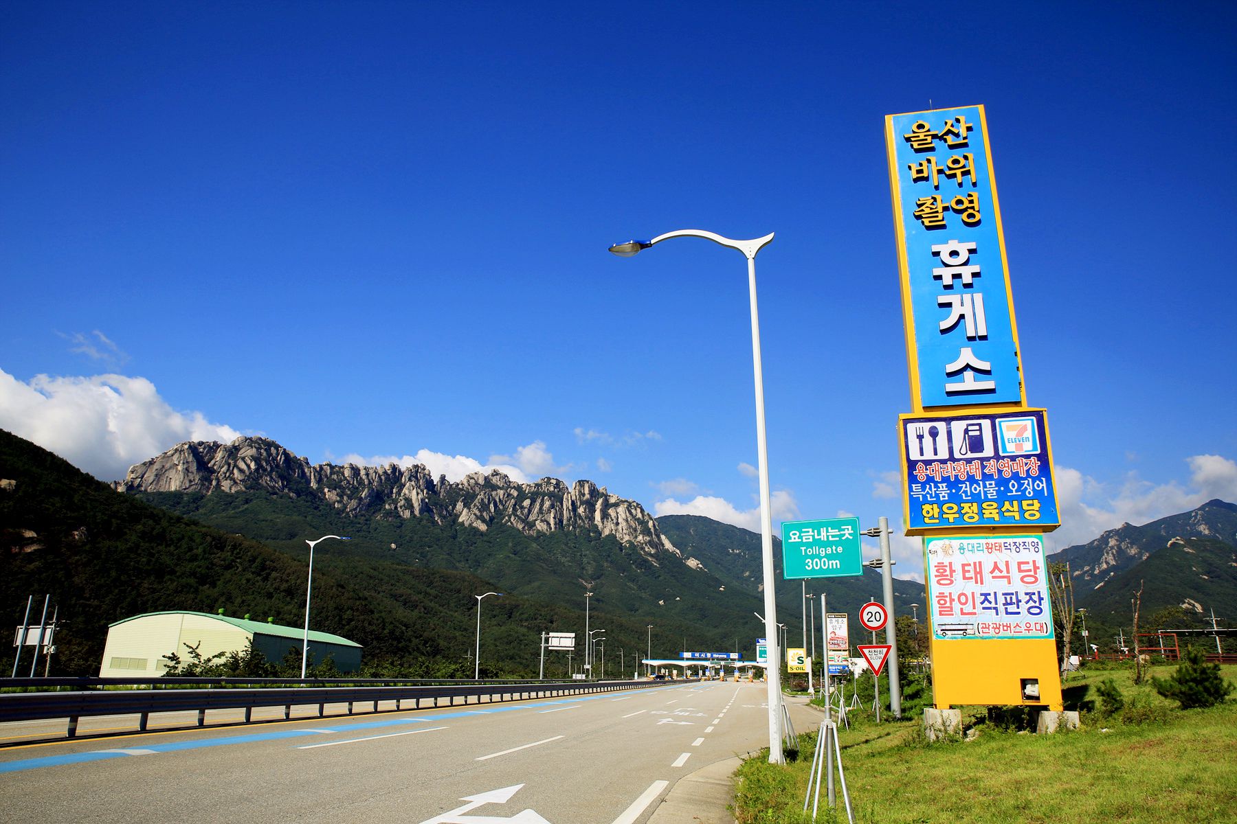 울산바위 촬영휴게소는 설악산 끝자락의 속초와 고성의 경계 지역에 있습니다. 자연의 위용과 함께 예술성을 있는 그대로 보여주는 기암절벽입니다. 사방이 절벽으로 이루어져 있으며 둘레 4㎞, 6개의 봉우리로 어우러져 있습니다.