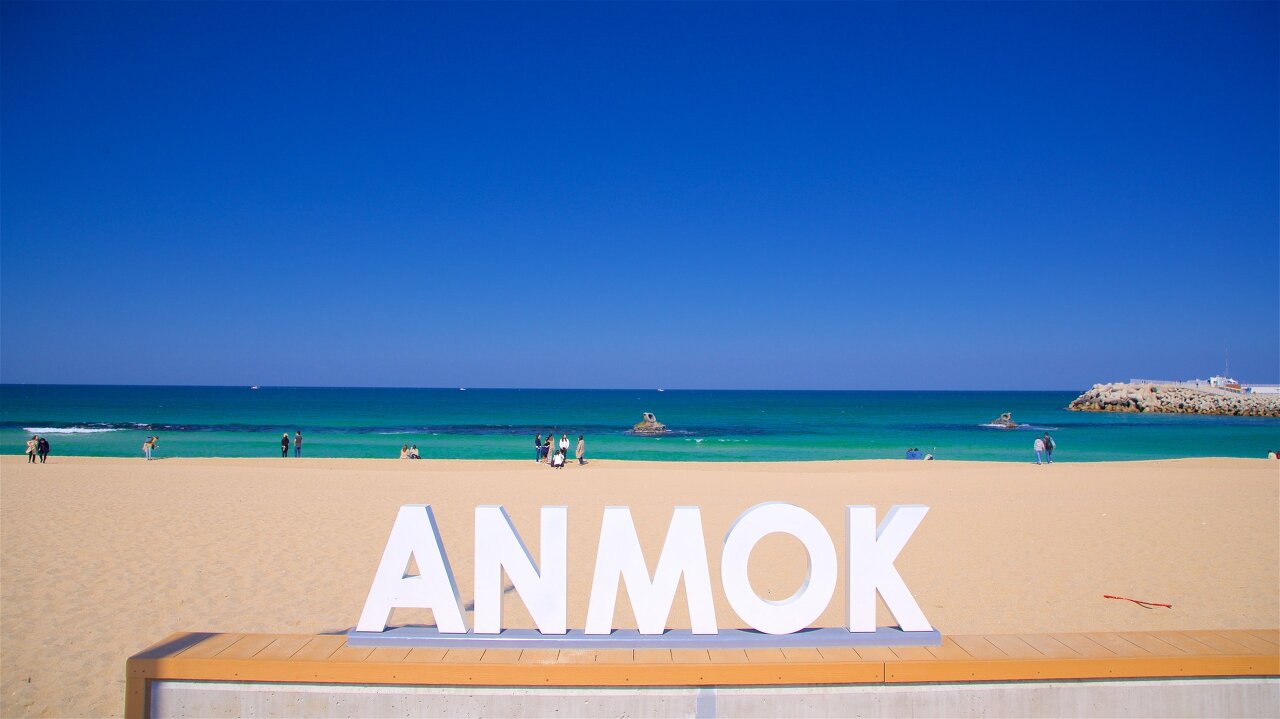 안목해변은 강원도 강릉시 안목동에 위치한 아름다운 해변입니다. 대한민국 동해안에서 가장 아름다운 해변 중 하나로 꼽히며, 그 탁 트인 푸른 바다와 백사장이 인상적입니다.